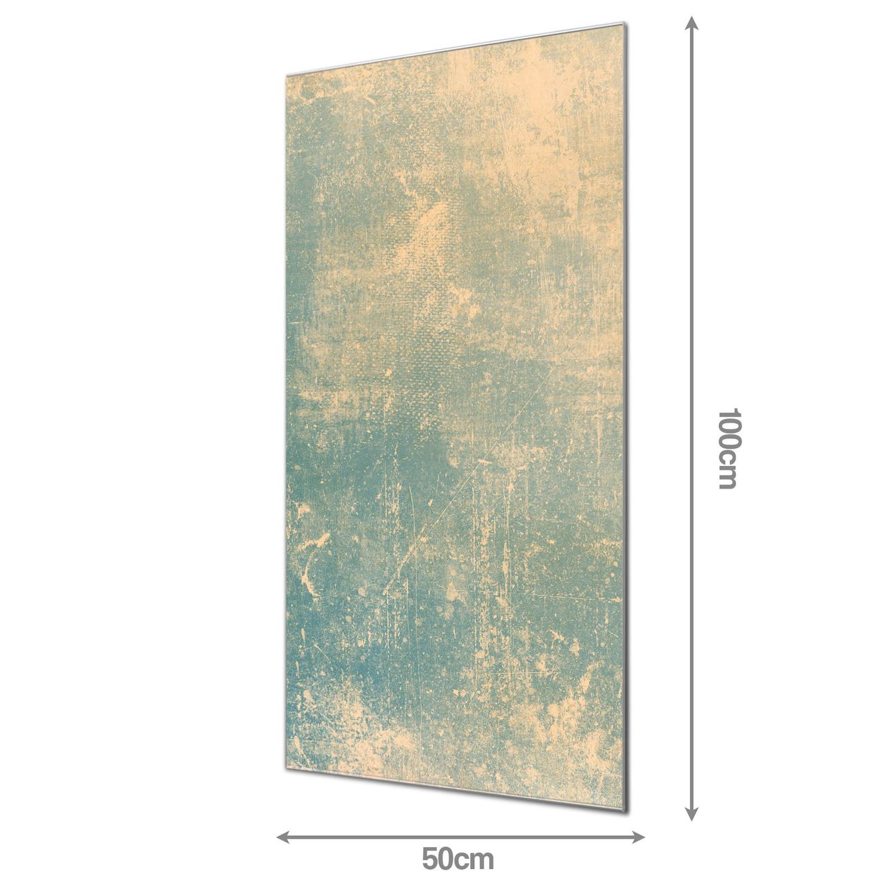 Material: 4mm Sicherheitsglas mit Metallrückwand Eigenschaften: beschreibbar, magnetisch, kratzfest Maße: 50x100x0,6cm, 7,50 kg schwer Motiv Nummer 11484 Patina Grün Zubehör: inklusive 4 Neodym-Magnete
