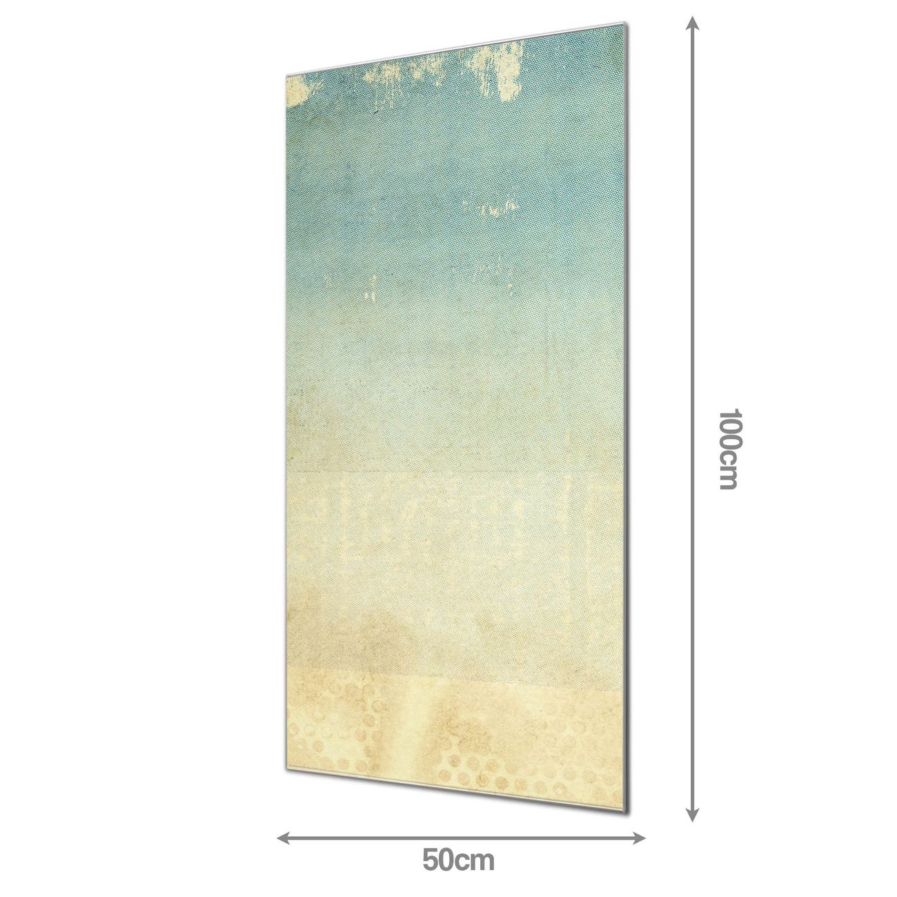Material: 4mm Sicherheitsglas mit Metallrückwand Eigenschaften: beschreibbar, magnetisch, kratzfest Maße: 50x100x0,6cm, 7,50 kg schwer Motiv Nummer 11570 Patina Papier Zubehör: inklusive 4 Neodym-Magnete