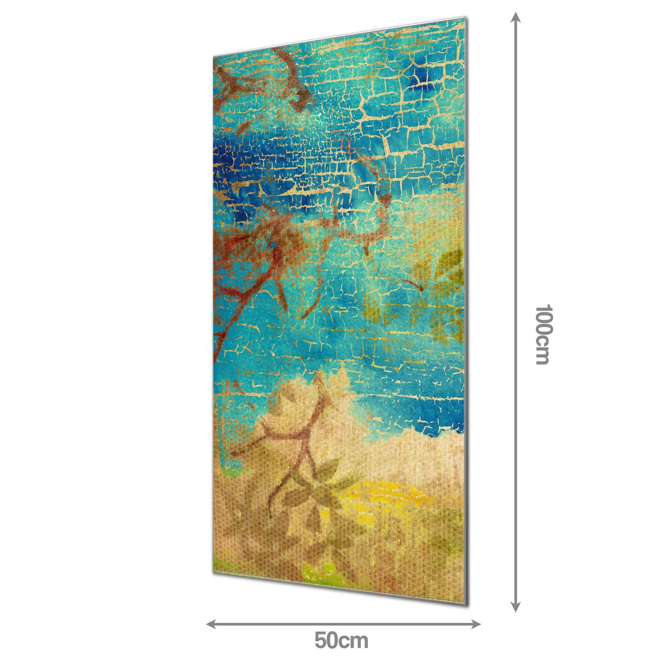 Material: 4mm Sicherheitsglas mit Metallrückwand Eigenschaften: beschreibbar, magnetisch, kratzfest Maße: 50x100x0,6cm, 7,50 kg schwer Motiv Nummer 12077 Patina Zubehör: inklusive 4 Neodym-Magnete