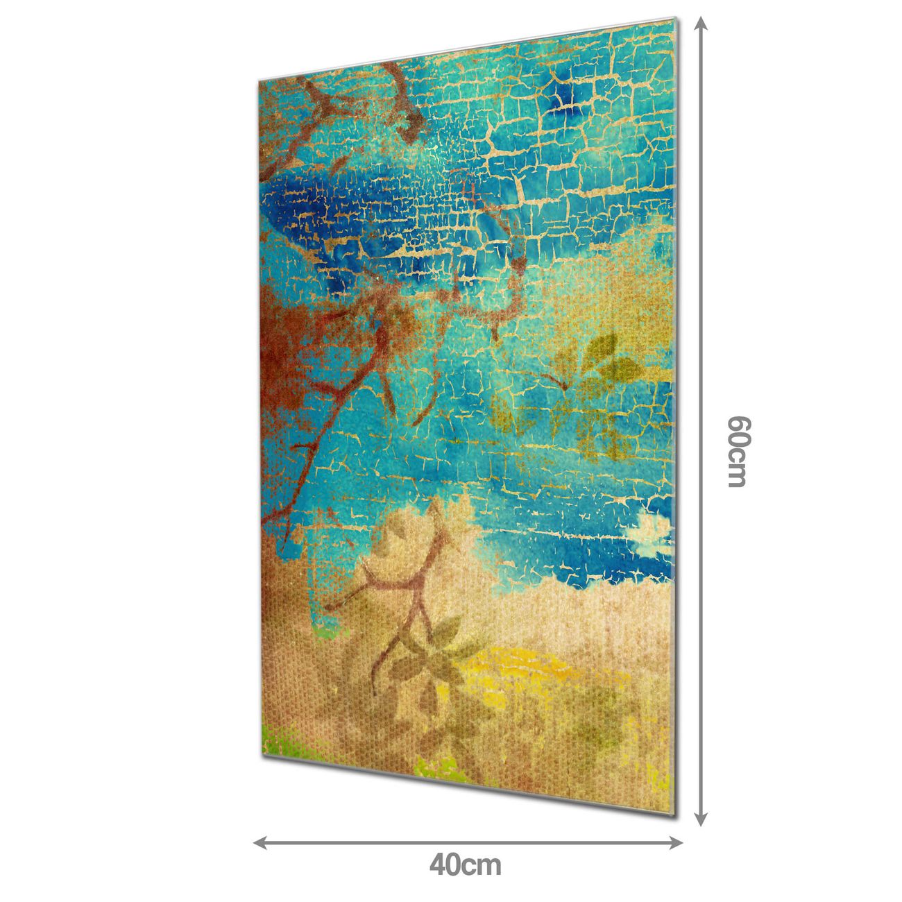 Material: 4mm Sicherheitsglas mit Metallrückwand Eigenschaften: beschreibbar, magnetisch, kratzfest Maße: 40x60x0,6cm, 3,60 kg schwer Motiv Nummer 12077 Patina Zubehör: inklusive 4 Neodym-Magnete
