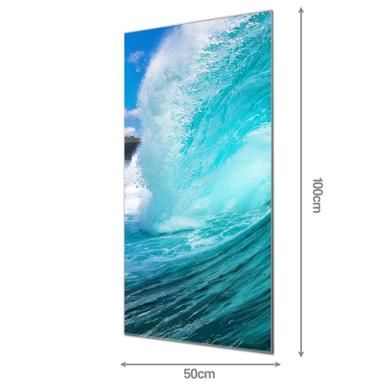 Material: 4mm Sicherheitsglas mit Metallrückwand Eigenschaften: beschreibbar, magnetisch, kratzfest Maße: 50x100x0,6cm, 7,50 kg schwer Motiv Nummer 10096 Perfekte Welle Zubehör: inklusive 4 Neodym-Magnete
