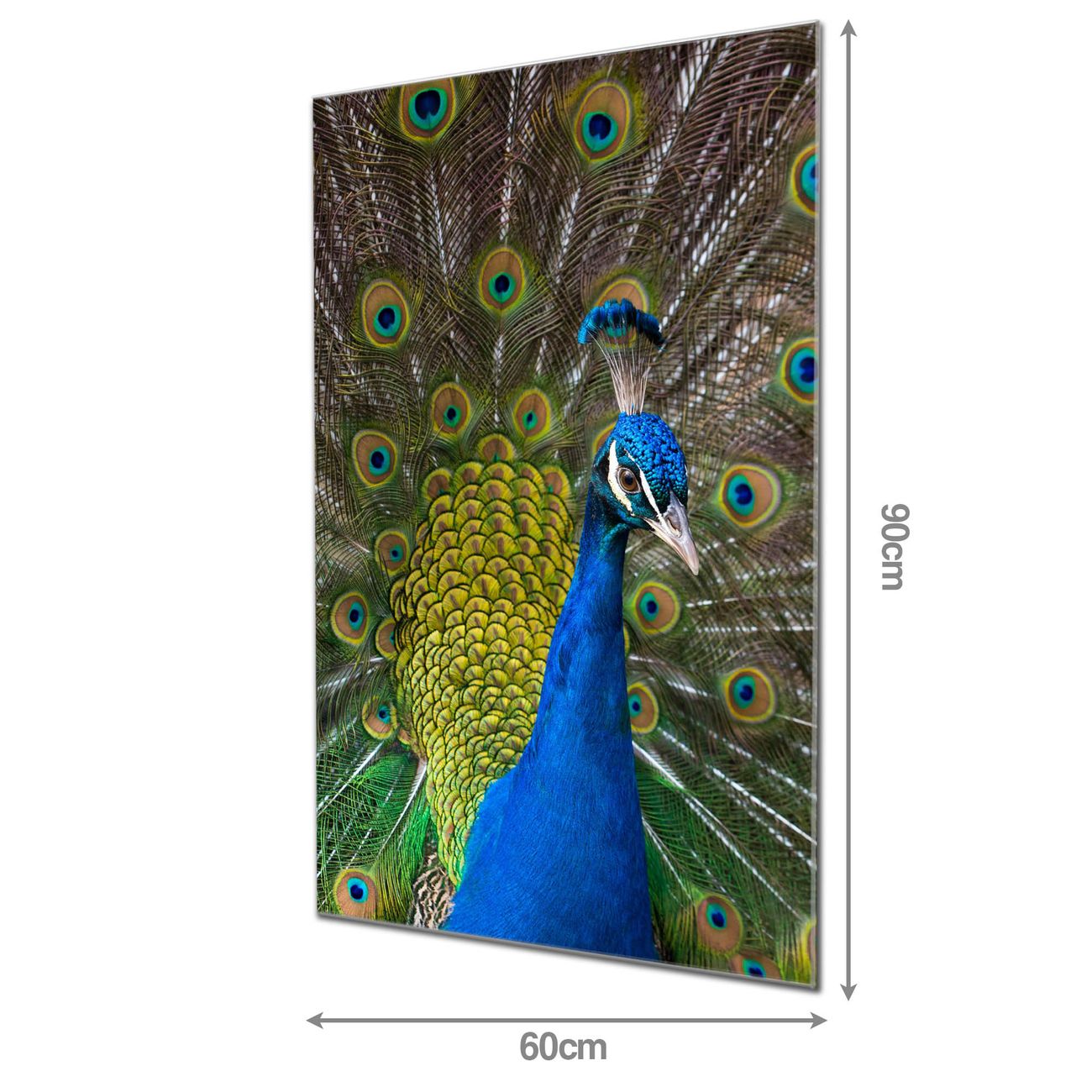 Material  4mm Sicherheitsglas mit Metallrückwand Eigenschaften  beschreibbar, magnetisch, kratzfest Maße  60x90x0,6cm, 8,10 kg schwer Motiv  Nummer 10500 Pfau Zubehör  inklusive 4 Neodym-Magnete