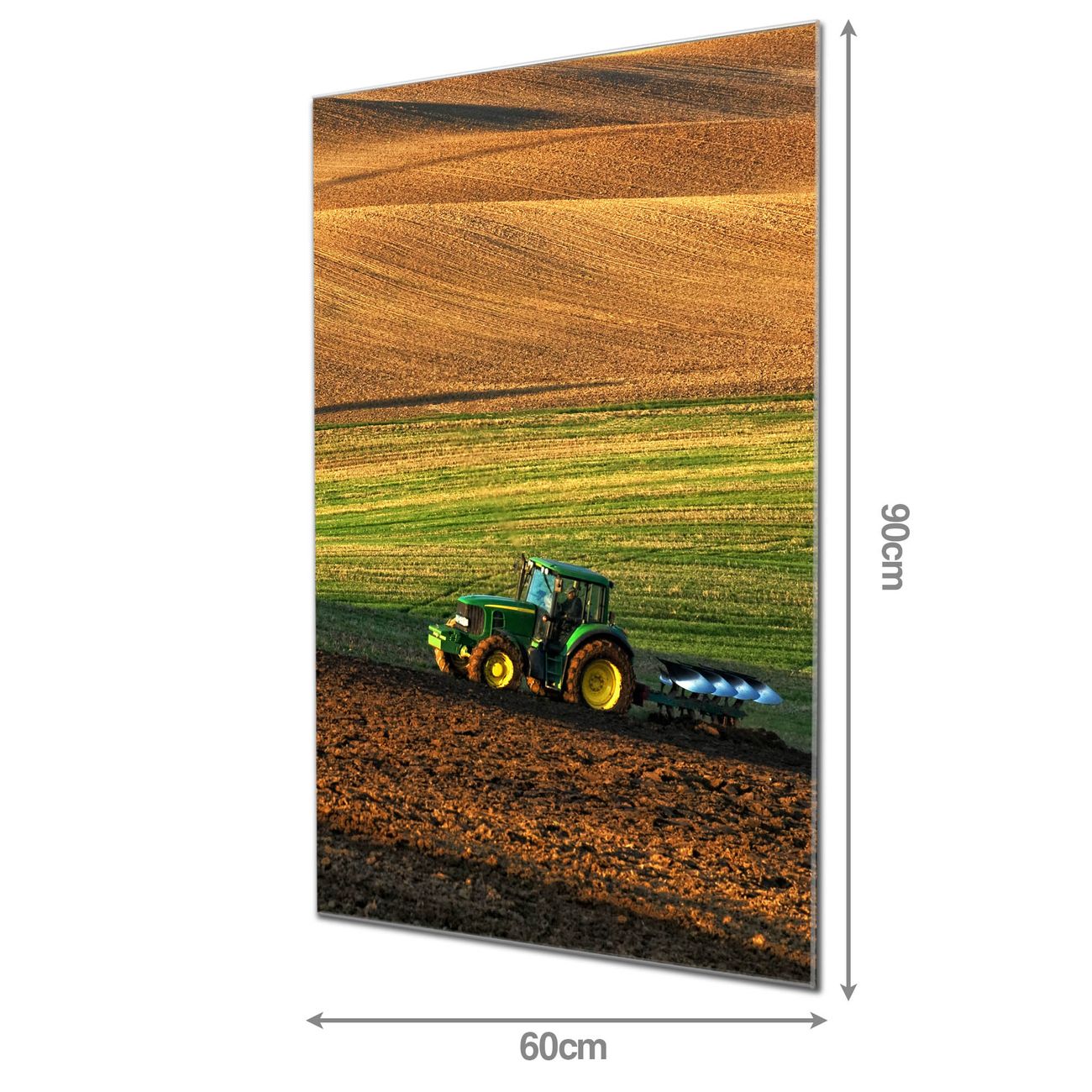 Material: 4mm Sicherheitsglas mit Metallrückwand Eigenschaften: beschreibbar, magnetisch, kratzfest Maße: 60x90x0,6cm, 8,10 kg schwer Motiv Nummer 11207 Pflügen Zubehör: inklusive 4 Neodym-Magnete