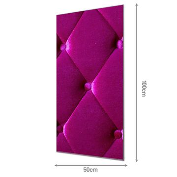 Material: 4mm Sicherheitsglas mit Metallrückwand Eigenschaften: beschreibbar, magnetisch, kratzfest Maße: 50x100x0,6cm, 7,50 kg schwer Motiv Nummer 11747 Pink Polster Zubehör: inklusive 4 Neodym-Magnete