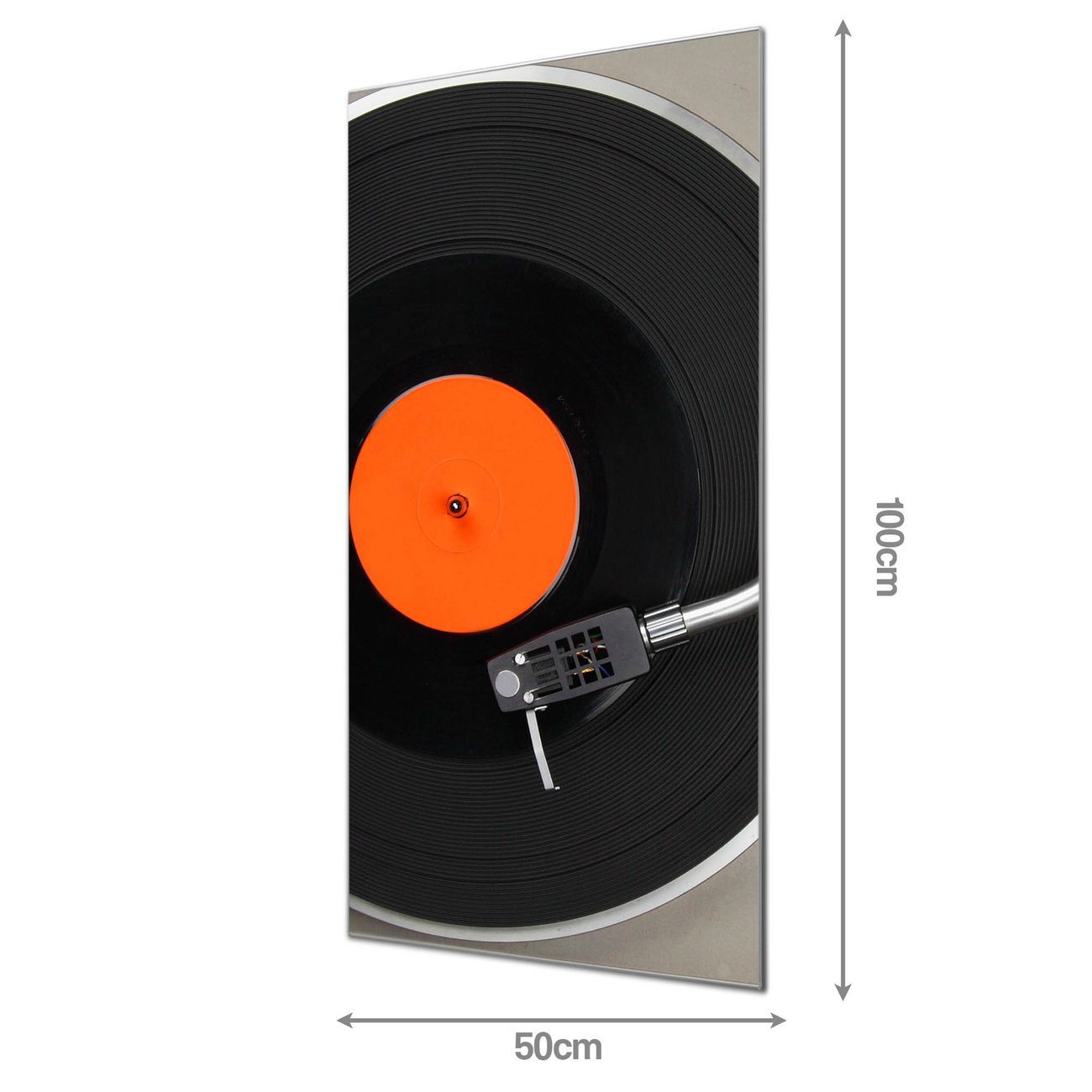 Material: 4mm Sicherheitsglas mit Metallrückwand Eigenschaften: beschreibbar, magnetisch, kratzfest Maße: 50x100x0,6cm, 7,50 kg schwer Motiv Nummer 10269 Plattenspieler Zubehör: inklusive 4 Neodym-Magnete