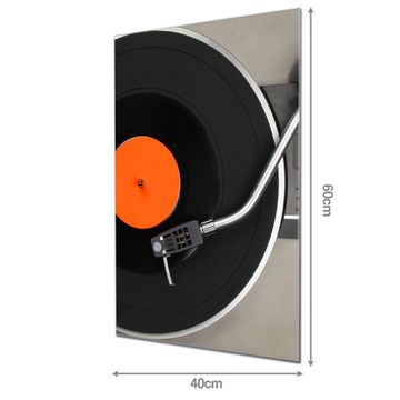 Material: 4mm Sicherheitsglas mit Metallrückwand Eigenschaften: beschreibbar, magnetisch, kratzfest Maße: 40x60x0,6cm, 3,60 kg schwer Motiv Nummer 10269 Plattenspieler Zubehör: inklusive 4 Neodym-Magnete