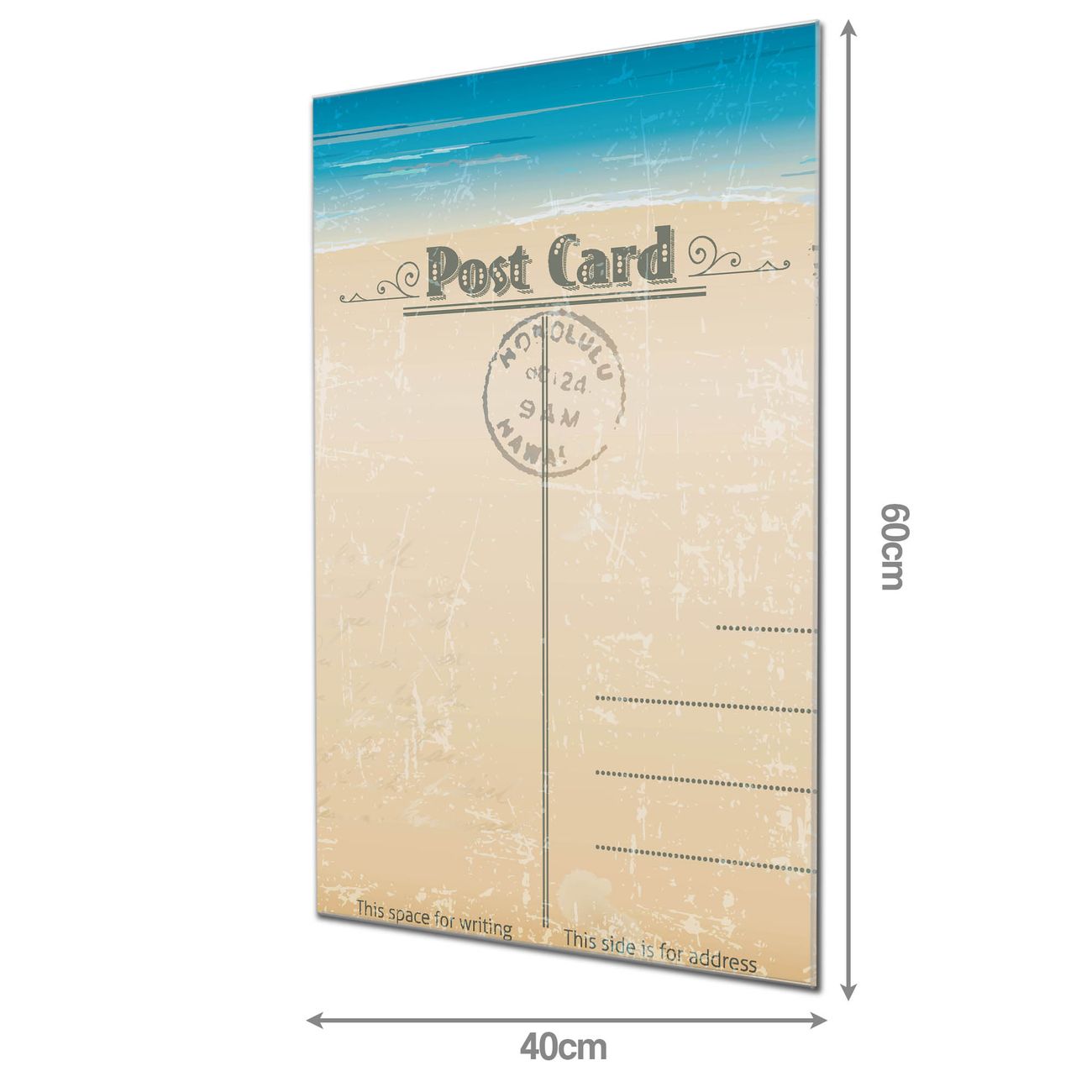 Material: 4mm Sicherheitsglas mit Metallrückwand Eigenschaften: beschreibbar, magnetisch, kratzfest Maße: 40x60x0,6cm, 3,60 kg schwer Motiv Nummer 10316 Postkarte Zubehör: inklusive 4 Neodym-Magnete