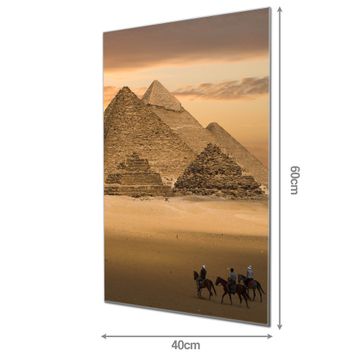 Material: 4mm Sicherheitsglas mit Metallrückwand Eigenschaften: beschreibbar, magnetisch, kratzfest Maße: 40x60x0,6cm, 3,60 kg schwer Motiv Nummer 10167 Pyramiden Zubehör: inklusive 4 Neodym-Magnete