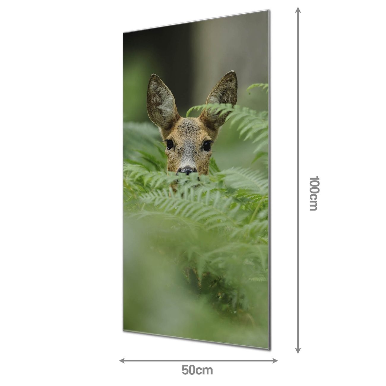 Material: 4mm Sicherheitsglas mit Metallrückwand Eigenschaften: beschreibbar, magnetisch, kratzfest Maße: 50x100x0,6cm, 7,50 kg schwer Motiv Nummer 10497 Reh Zubehör: inklusive 4 Neodym-Magnete