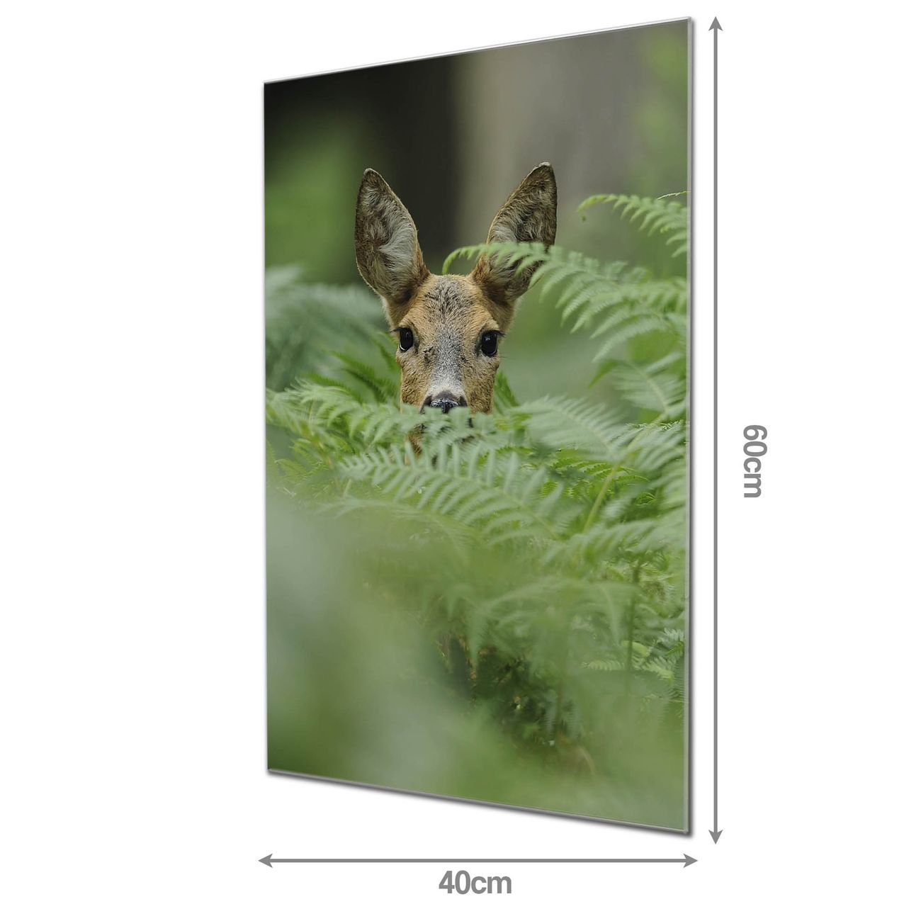 Material: 4mm Sicherheitsglas mit Metallrückwand Eigenschaften: beschreibbar, magnetisch, kratzfest Maße: 40x60x0,6cm, 3,60 kg schwer Motiv Nummer 10497 Reh Zubehör: inklusive 4 Neodym-Magnete