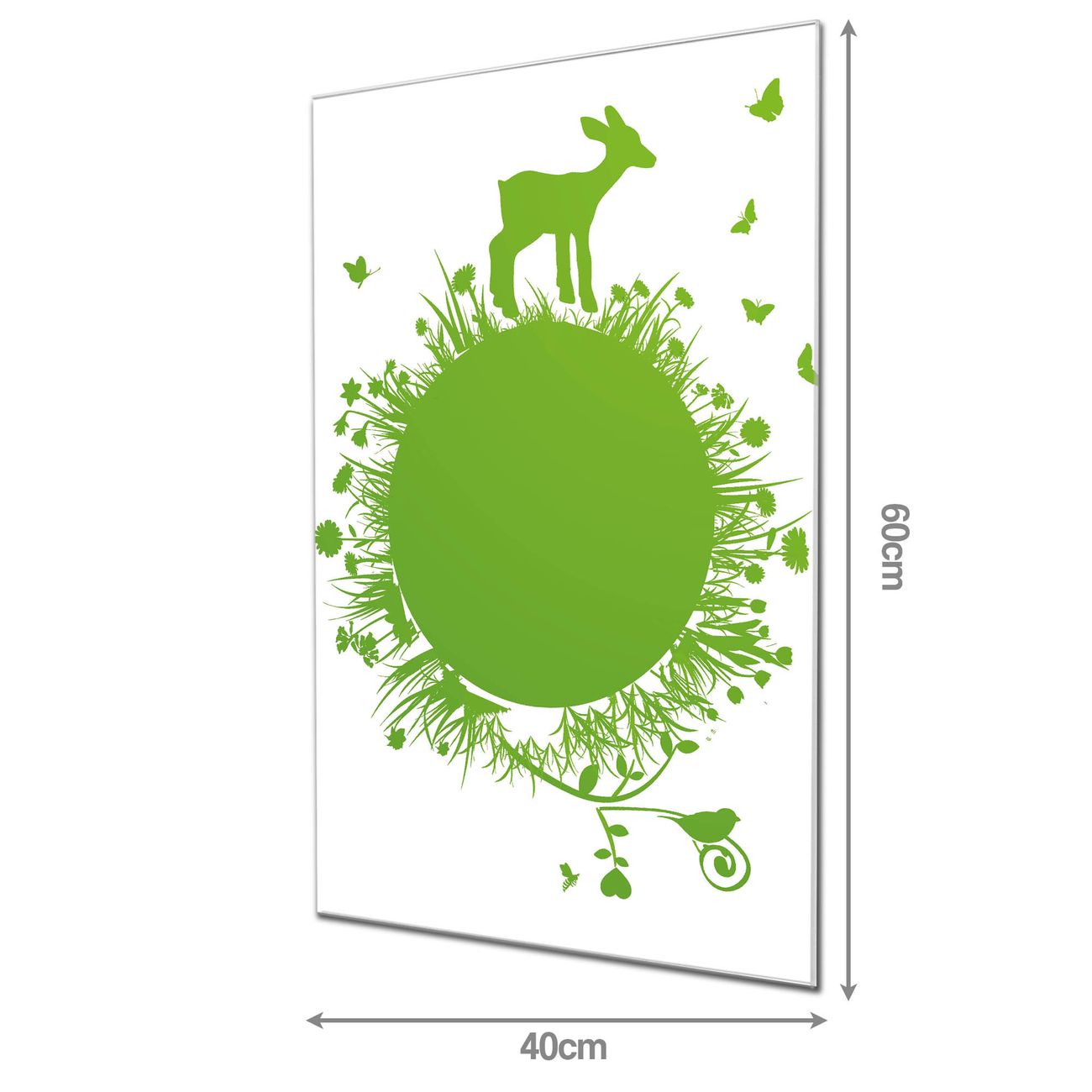 Material: 4mm Sicherheitsglas mit Metallrückwand Eigenschaften: beschreibbar, magnetisch, kratzfest Maße: 40x60x0,6cm, 3,60 kg schwer Motiv Nummer 10357 Rehkitz Zubehör: inklusive 4 Neodym-Magnete