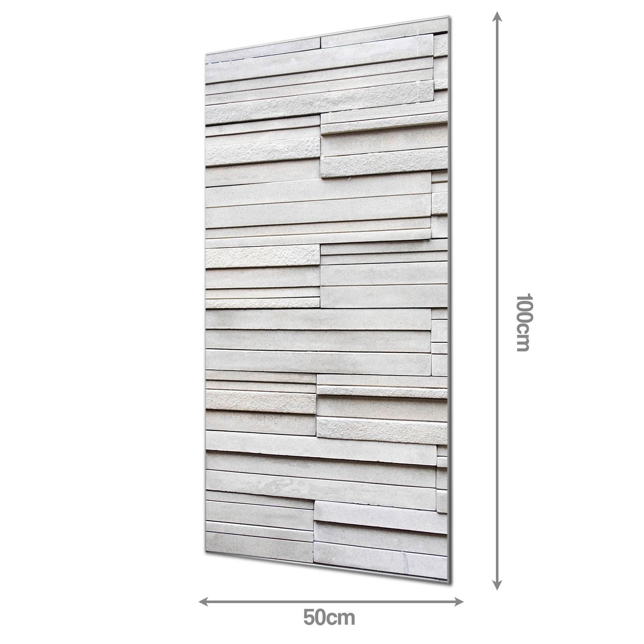 Material: 4mm Sicherheitsglas mit Metallrückwand Eigenschaften: beschreibbar, magnetisch, kratzfest Maße: 50x100x0,6cm, 7,50 kg schwer Motiv Nummer 11516 Relief Zubehör: inklusive 4 Neodym-Magnete