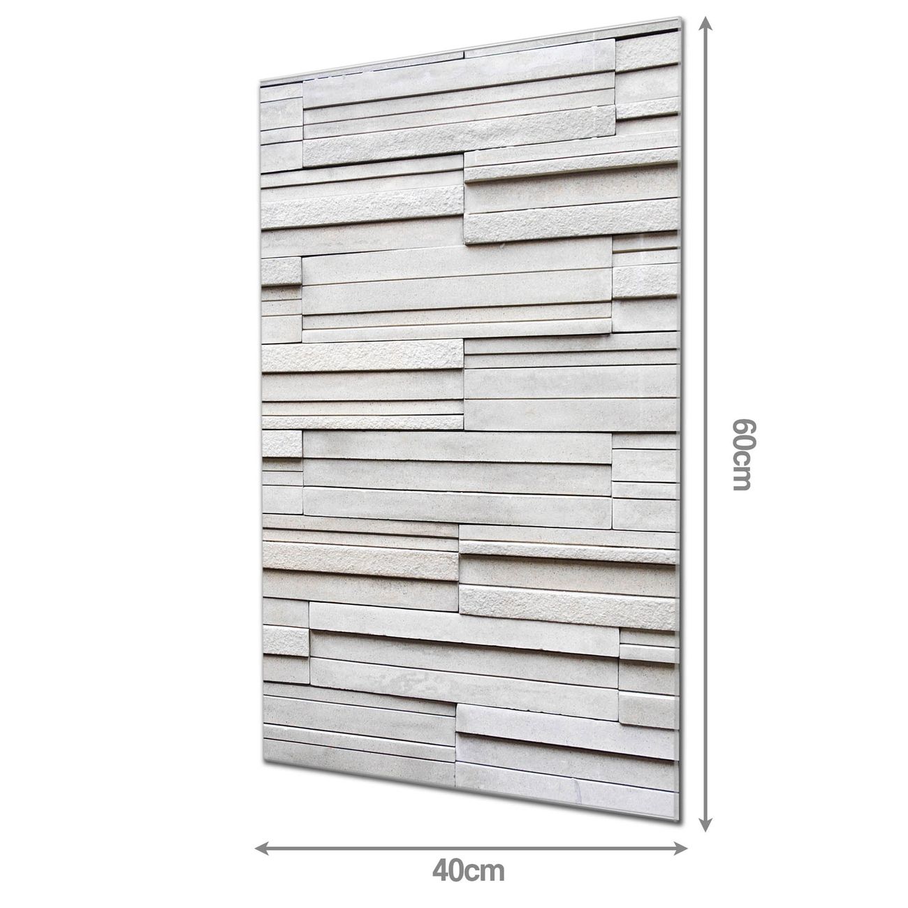 Material: 4mm Sicherheitsglas mit Metallrückwand Eigenschaften: beschreibbar, magnetisch, kratzfest Maße: 40x60x0,6cm, 3,60 kg schwer Motiv Nummer 11516 Relief Zubehör: inklusive 4 Neodym-Magnete