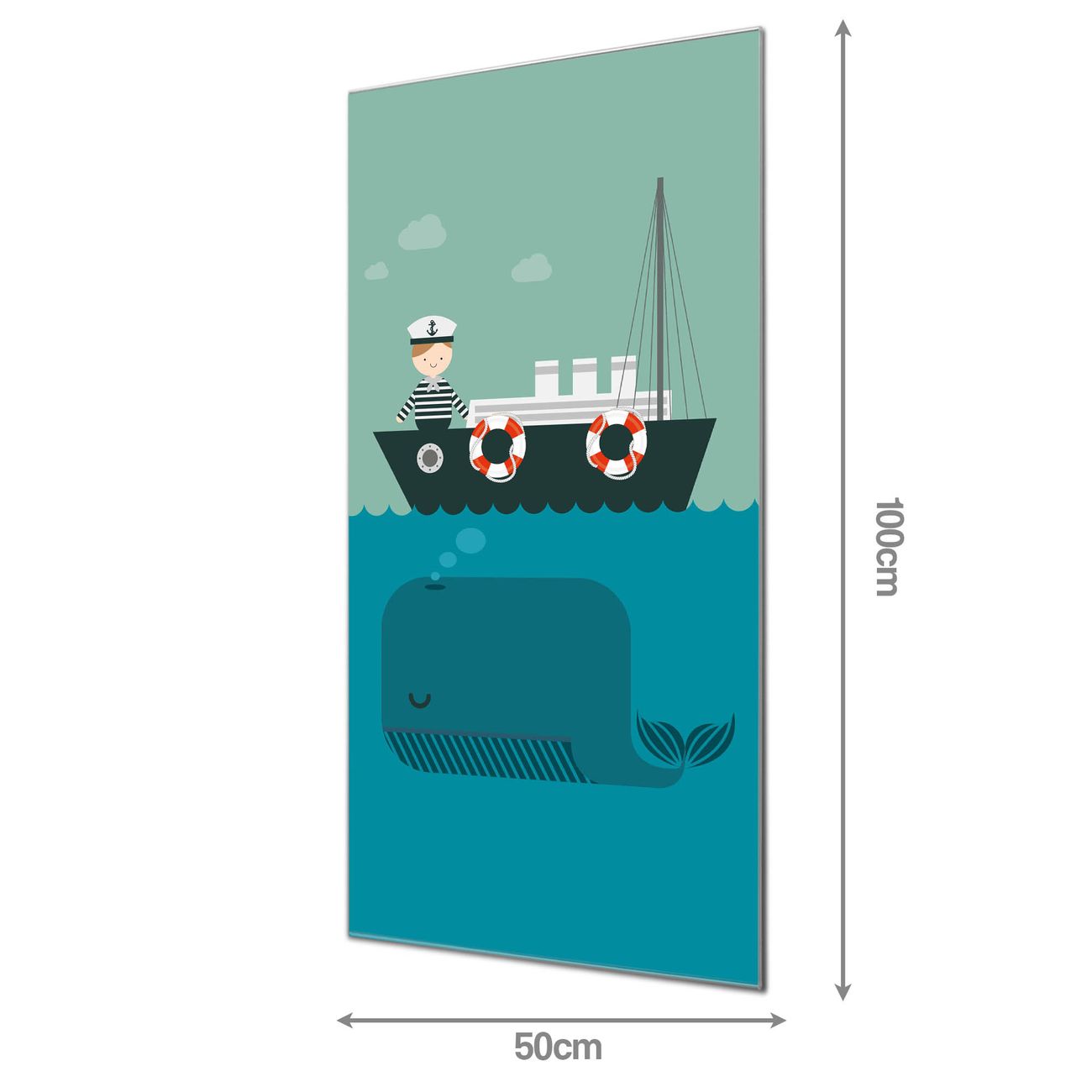Material: 4mm Sicherheitsglas mit Metallrückwand Eigenschaften: beschreibbar, magnetisch, kratzfest Maße: 50x100x0,6cm, 7,50 kg schwer Motiv Nummer 11930 Rettet die Wale Zubehör: inklusive 4 Neodym-Magnete