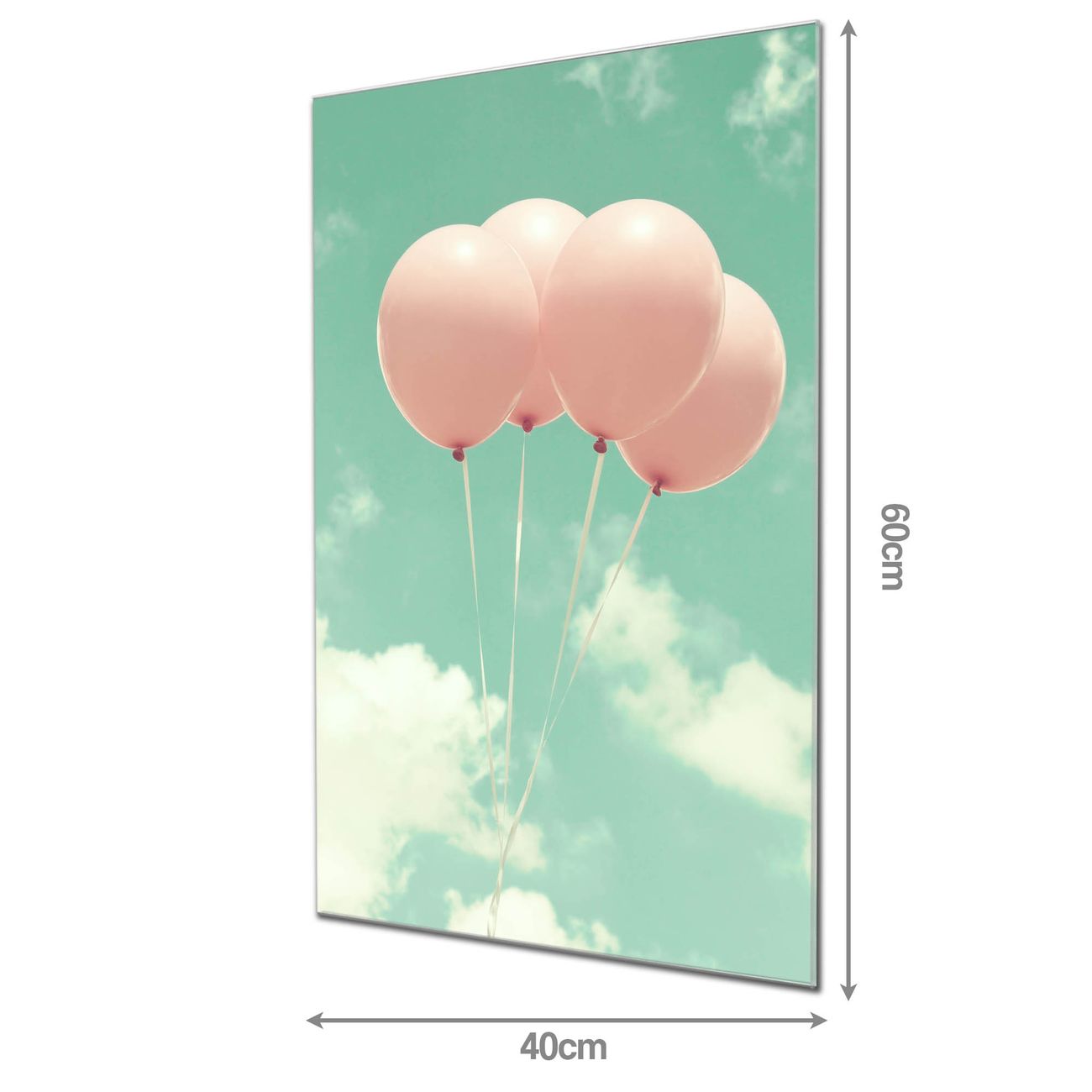 Material: 4mm Sicherheitsglas mit Metallrückwand Eigenschaften: beschreibbar, magnetisch, kratzfest Maße: 40x60x0,6cm, 3,60 kg schwer Motiv Nummer 11434 Rosa Ballons Zubehör: inklusive 4 Neodym-Magnete