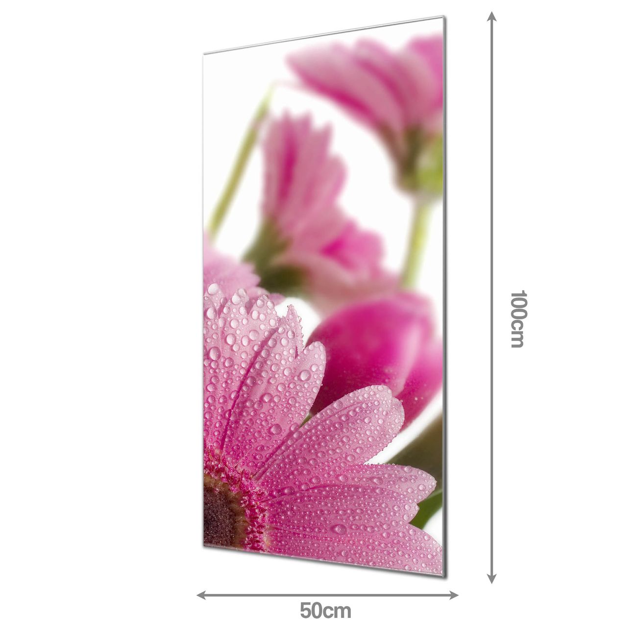 Material: 4mm Sicherheitsglas mit Metallrückwand Eigenschaften: beschreibbar, magnetisch, kratzfest Maße: 50x100x0,6cm, 7,50 kg schwer Motiv Nummer 10152 Rosa Gerbera Zubehör: inklusive 4 Neodym-Magnete