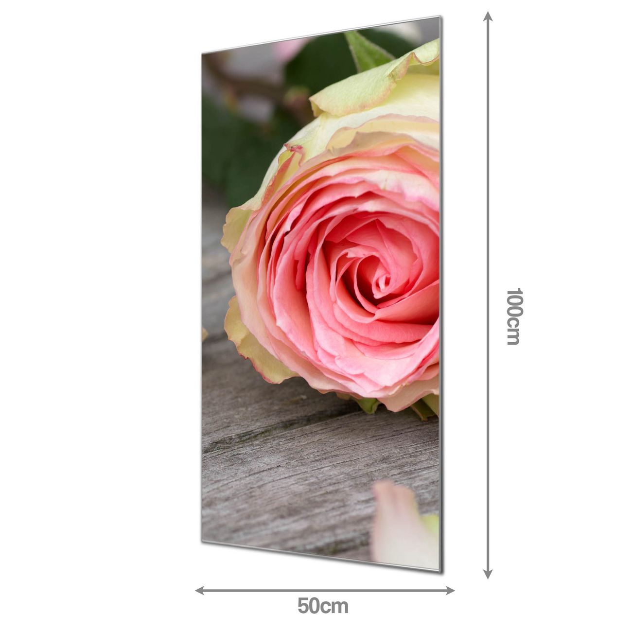 Material: 4mm Sicherheitsglas mit Metallrückwand Eigenschaften: beschreibbar, magnetisch, kratzfest Maße: 50x100x0,6cm, 7,50 kg schwer Motiv Nummer 10231 Rosa Rose Zubehör: inklusive 4 Neodym-Magnete