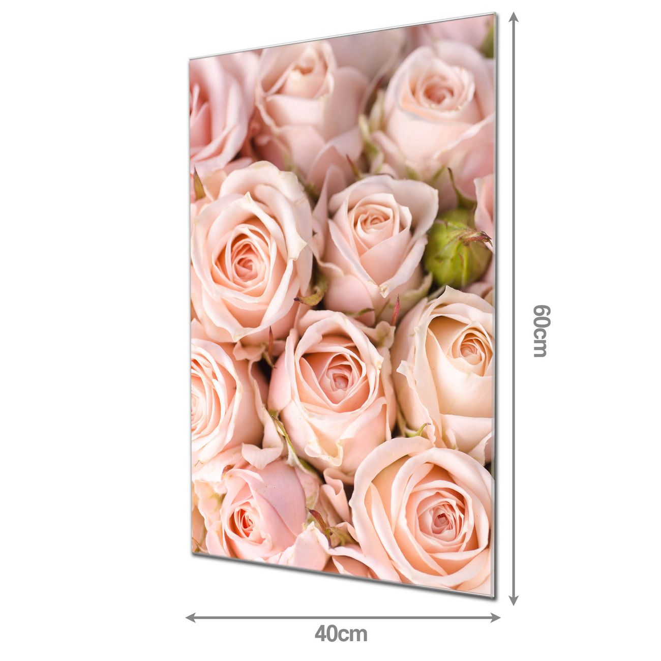 Material: 4mm Sicherheitsglas mit Metallrückwand Eigenschaften: beschreibbar, magnetisch, kratzfest Maße: 40x60x0,6cm, 3,60 kg schwer Motiv Nummer 11213 Rosenbouquet Zubehör: inklusive 4 Neodym-Magnete