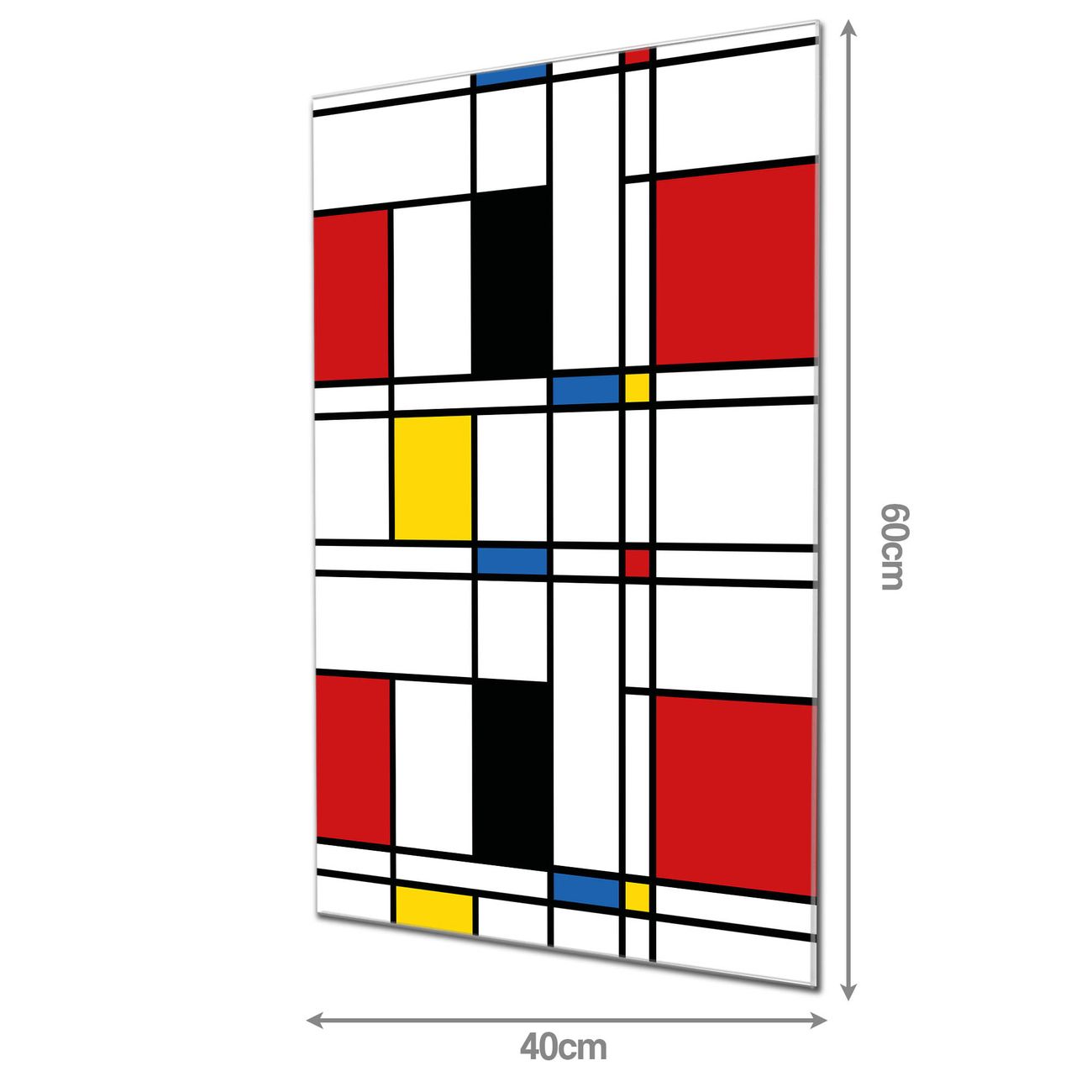 Material: 4mm Sicherheitsglas mit Metallrückwand Eigenschaften: beschreibbar, magnetisch, kratzfest Maße: 40x60x0,6cm, 3,60 kg schwer Motiv Nummer 12136 Rot Gelb Blau Zubehör: inklusive 4 Neodym-Magnete