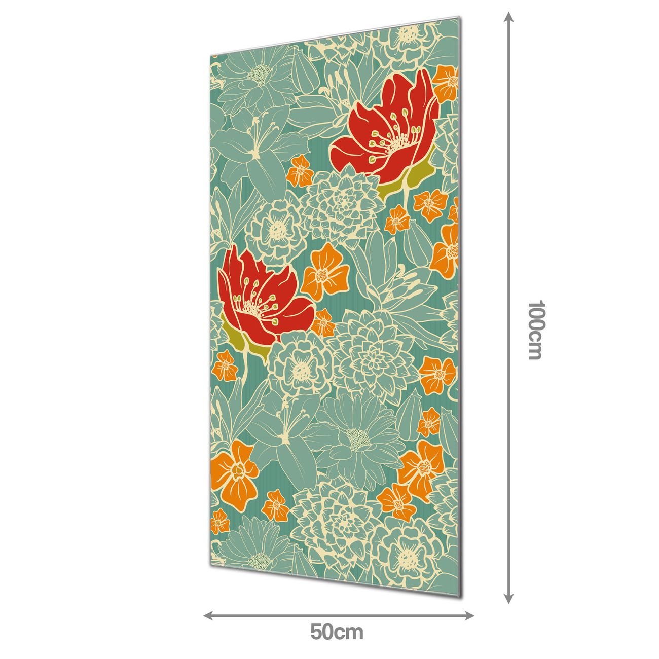 Material: 4mm Sicherheitsglas mit Metallrückwand Eigenschaften: beschreibbar, magnetisch, kratzfest Maße: 50x100x0,6cm, 7,50 kg schwer Motiv Nummer 11344 Rote Blumen Zubehör: inklusive 4 Neodym-Magnete