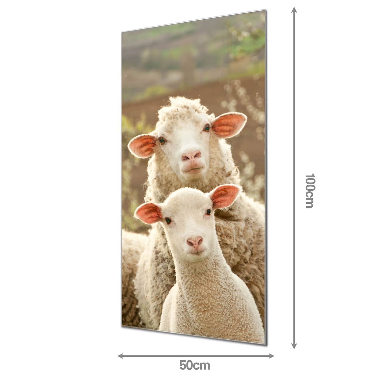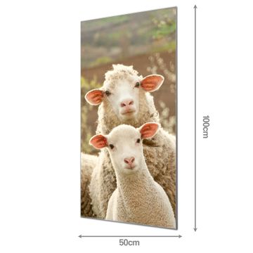 Material: 4mm Sicherheitsglas mit Metallrückwand Eigenschaften: beschreibbar, magnetisch, kratzfest Maße: 50x100x0,6cm, 7,50 kg schwer Motiv Nummer 10473 Schaffamilie Zubehör: inklusive 4 Neodym-Magnete