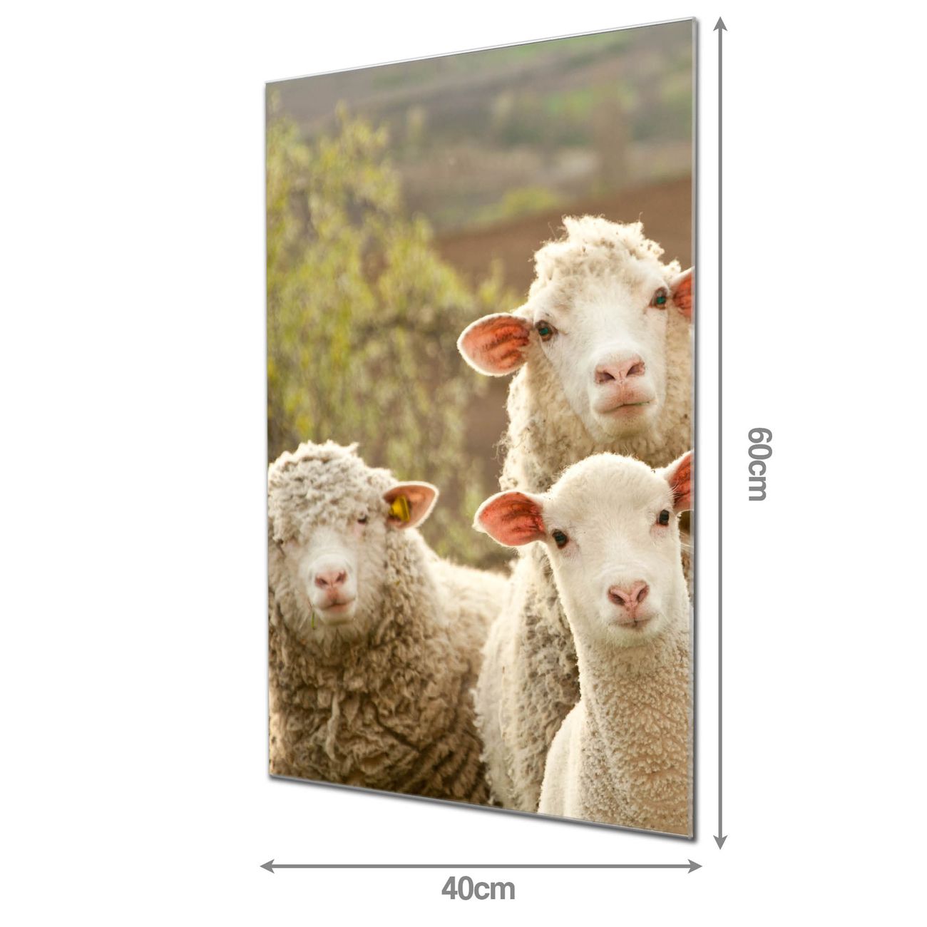 Material: 4mm Sicherheitsglas mit Metallrückwand Eigenschaften: beschreibbar, magnetisch, kratzfest Maße: 40x60x0,6cm, 3,60 kg schwer Motiv Nummer 10473 Schaffamilie Zubehör: inklusive 4 Neodym-Magnete