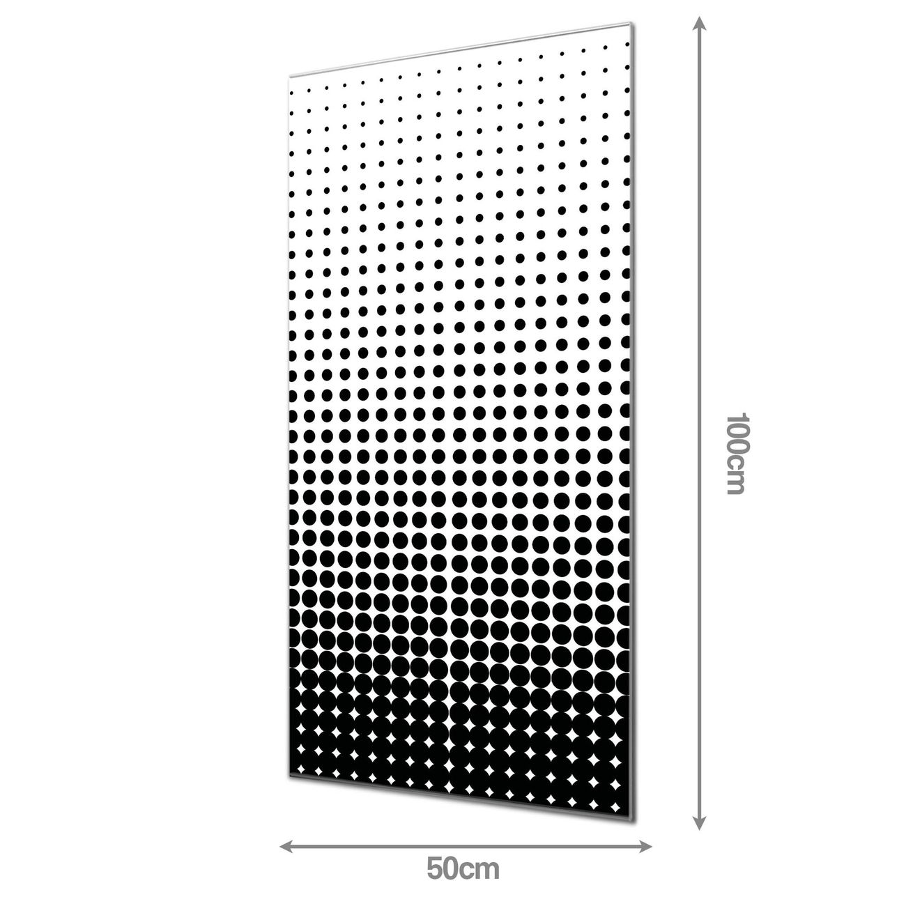 Material: 4mm Sicherheitsglas mit Metallrückwand Eigenschaften: beschreibbar, magnetisch, kratzfest Maße: 50x100x0,6cm, 7,50 kg schwer Motiv Nummer 10749 Schwarz Weiß Zubehör: inklusive 4 Neodym-Magnete