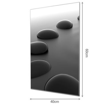 Material: 4mm Sicherheitsglas mit Metallrückwand Eigenschaften: beschreibbar, magnetisch, kratzfest Maße: 40x60x0,6cm, 3,60 kg schwer Motiv Nummer 12061 Schwarze Steine Zubehör: inklusive 4 Neodym-Magnete