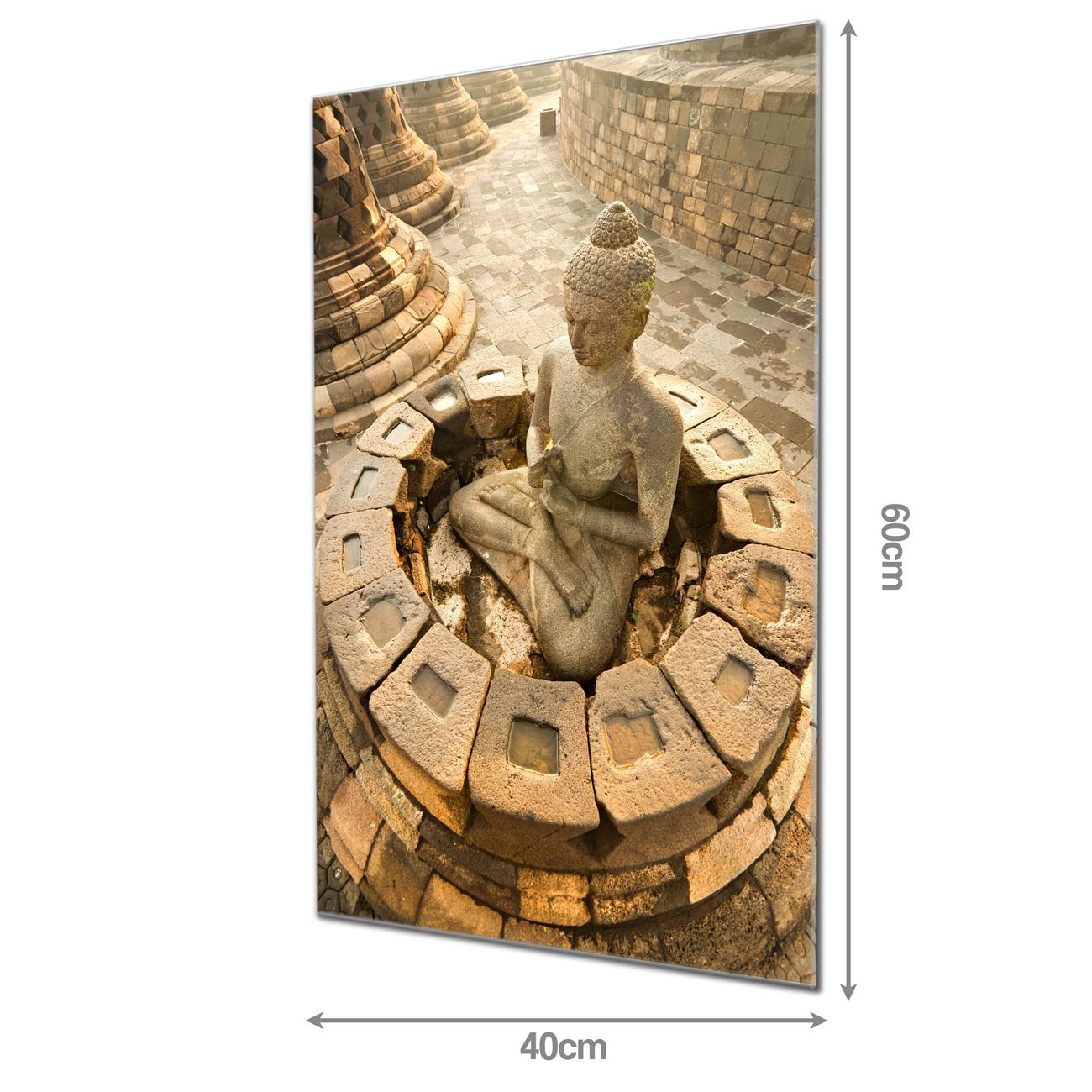 Material: 4mm Sicherheitsglas mit Metallrückwand Eigenschaften: beschreibbar, magnetisch, kratzfest Maße: 40x60x0,6cm, 3,60 kg schwer Motiv Nummer 11260 Sitzender Buddha Zubehör: inklusive 4 Neodym-Magnete