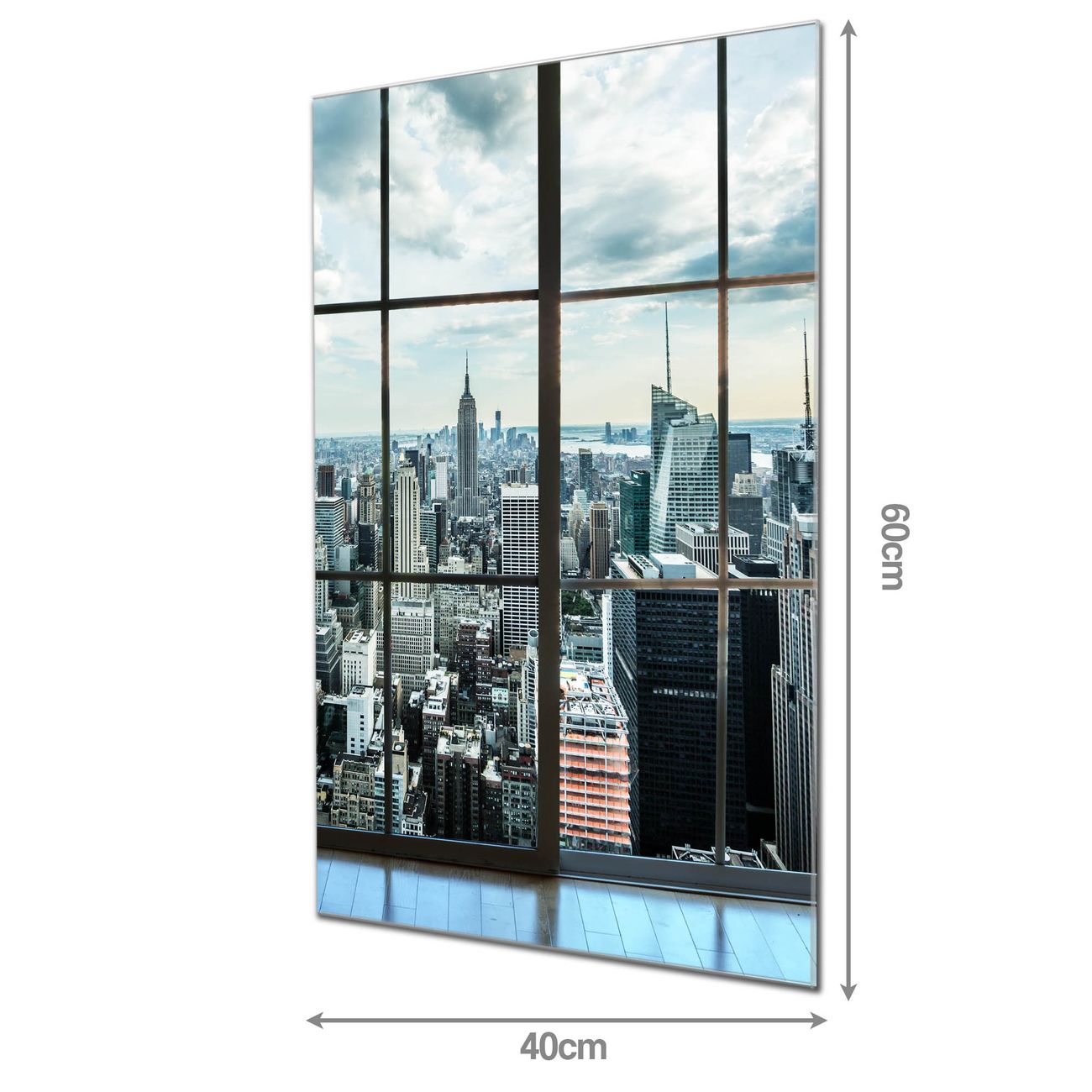 Material: 4mm Sicherheitsglas mit Metallrückwand Eigenschaften: beschreibbar, magnetisch, kratzfest Maße: 40x60x0,6cm, 3,60 kg schwer Motiv Nummer 12602 Skyline Manhattan Zubehör: inklusive 4 Neodym-Magnete