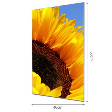 Material: 4mm Sicherheitsglas mit Metallrückwand Eigenschaften: beschreibbar, magnetisch, kratzfest Maße: 40x60x0,6cm, 3,60 kg schwer Motiv Nummer 10109 Sonnenblume Zubehör: inklusive 4 Neodym-Magnete