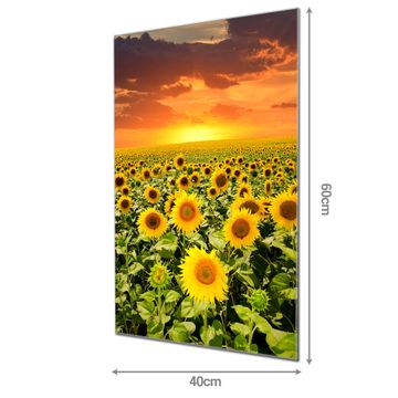 Material: 4mm Sicherheitsglas mit Metallrückwand Eigenschaften: beschreibbar, magnetisch, kratzfest Maße: 40x60x0,6cm, 3,60 kg schwer Motiv Nummer 12283 Sonnenblumenmeer Zubehör: inklusive 4 Neodym-Magnete