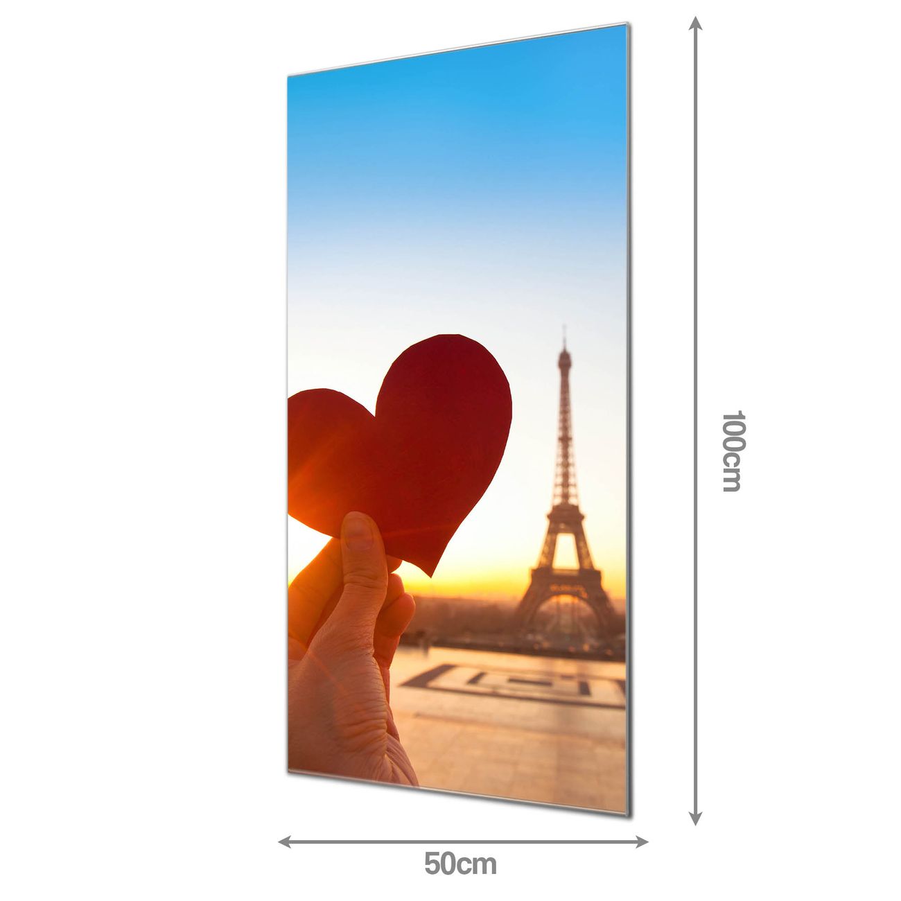 Material: 4mm Sicherheitsglas mit Metallrückwand Eigenschaften: beschreibbar, magnetisch, kratzfest Maße: 50x100x0,6cm, 7,50 kg schwer Motiv Nummer 10808 Stadt Der Liebe Zubehör: inklusive 4 Neodym-Magnete