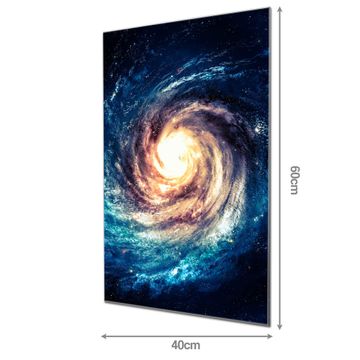 Material: 4mm Sicherheitsglas mit Metallrückwand Eigenschaften: beschreibbar, magnetisch, kratzfest Maße: 40x60x0,6cm, 3,60 kg schwer Motiv Nummer 10459 Sternenwirbel Zubehör: inklusive 4 Neodym-Magnete