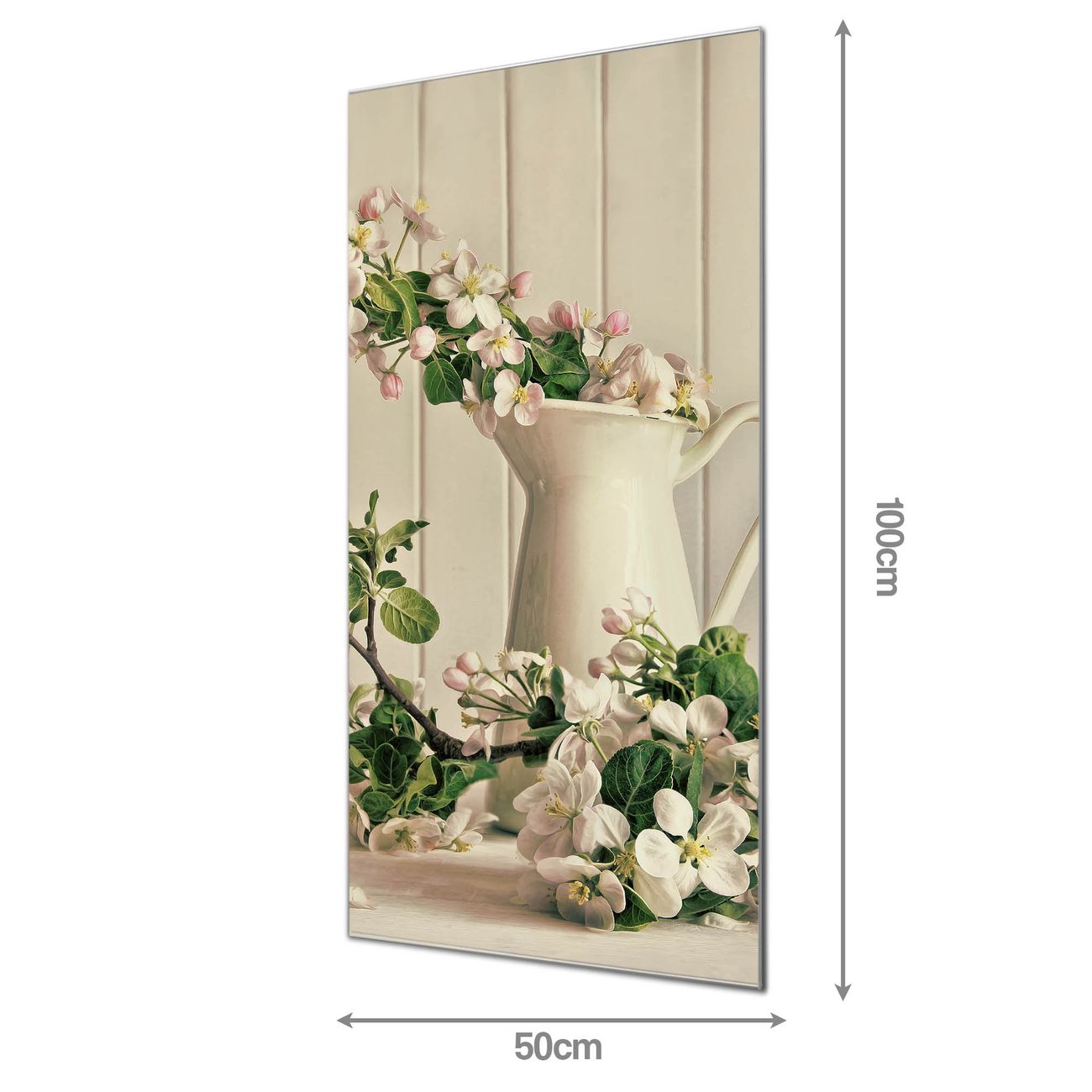 Material: 4mm Sicherheitsglas mit Metallrückwand Eigenschaften: beschreibbar, magnetisch, kratzfest Maße: 50x100x0,6cm, 7,50 kg schwer Motiv Nummer 10539 Stillleben Kirschblüten Zubehör: inklusive 4 Neodym-Magnete
