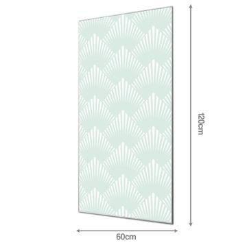 Material: 4mm Sicherheitsglas mit Metallrückwand Eigenschaften: beschreibbar, magnetisch, kratzfest Maße: 60x120x0,6cm, 10,80 kg schwer Motiv Nummer 11646 Strahlen Mint Zubehör: inklusive 4 Neodym-Magnete
