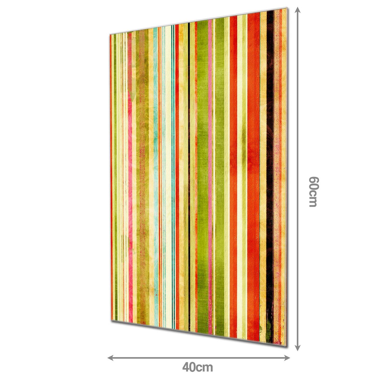 Material: 4mm Sicherheitsglas mit Metallrückwand Eigenschaften: beschreibbar, magnetisch, kratzfest Maße: 40x60x0,6cm, 3,60 kg schwer Motiv Nummer 10050 Streifen Zubehör: inklusive 4 Neodym-Magnete