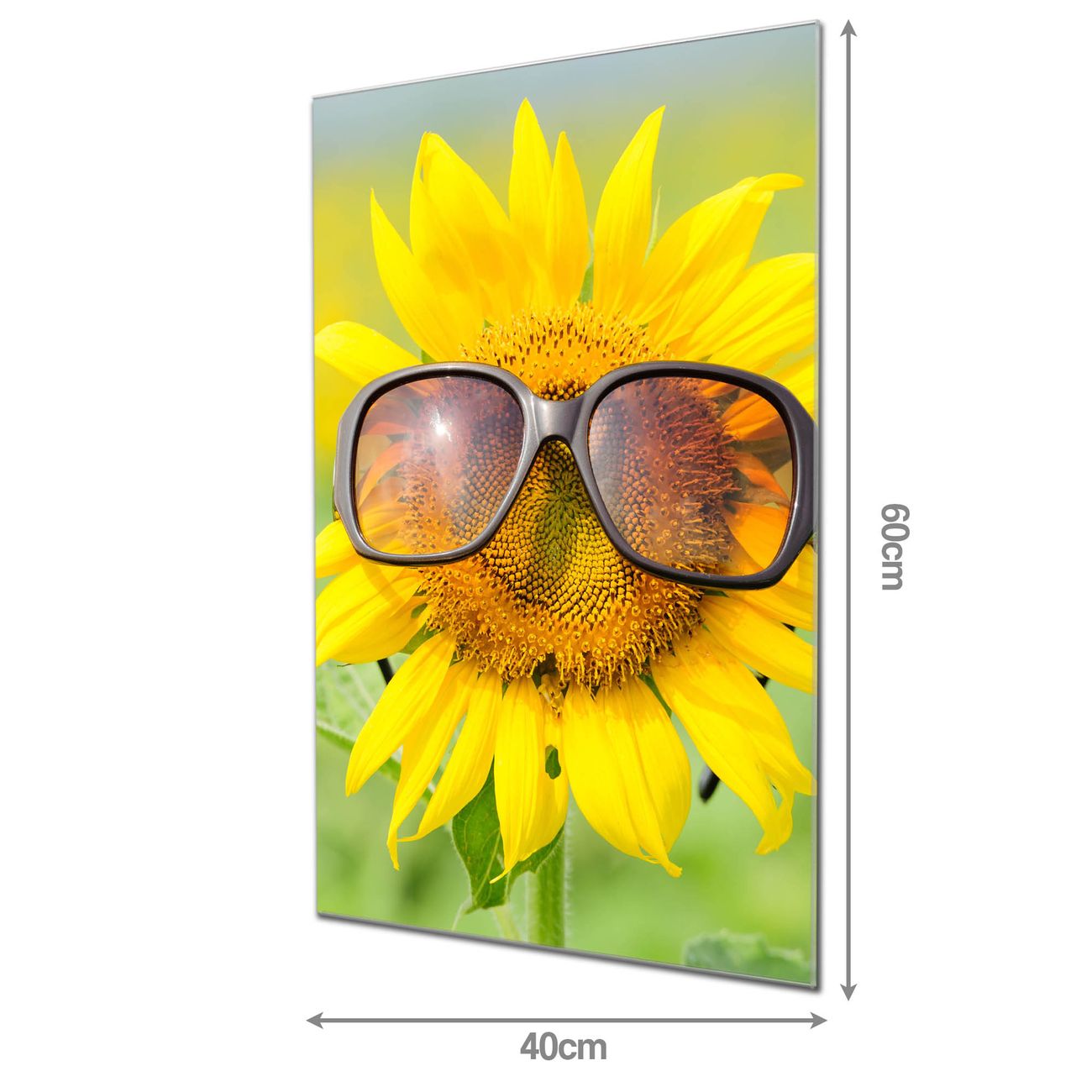 Material: 4mm Sicherheitsglas mit Metallrückwand Eigenschaften: beschreibbar, magnetisch, kratzfest Maße: 40x60x0,6cm, 3,60 kg schwer Motiv Nummer 12111 Sunny Zubehör: inklusive 4 Neodym-Magnete