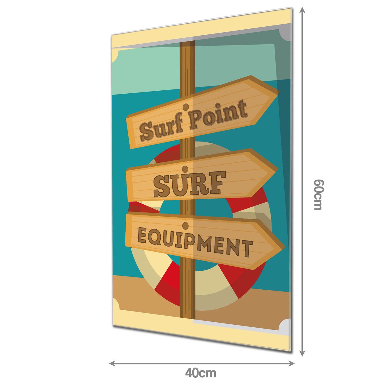 Material: 4mm Sicherheitsglas mit Metallrückwand Eigenschaften: beschreibbar, magnetisch, kratzfest Maße: 40x60x0,6cm, 3,60 kg schwer Motiv Nummer 10867 Surf Point Zubehör: inklusive 4 Neodym-Magnete