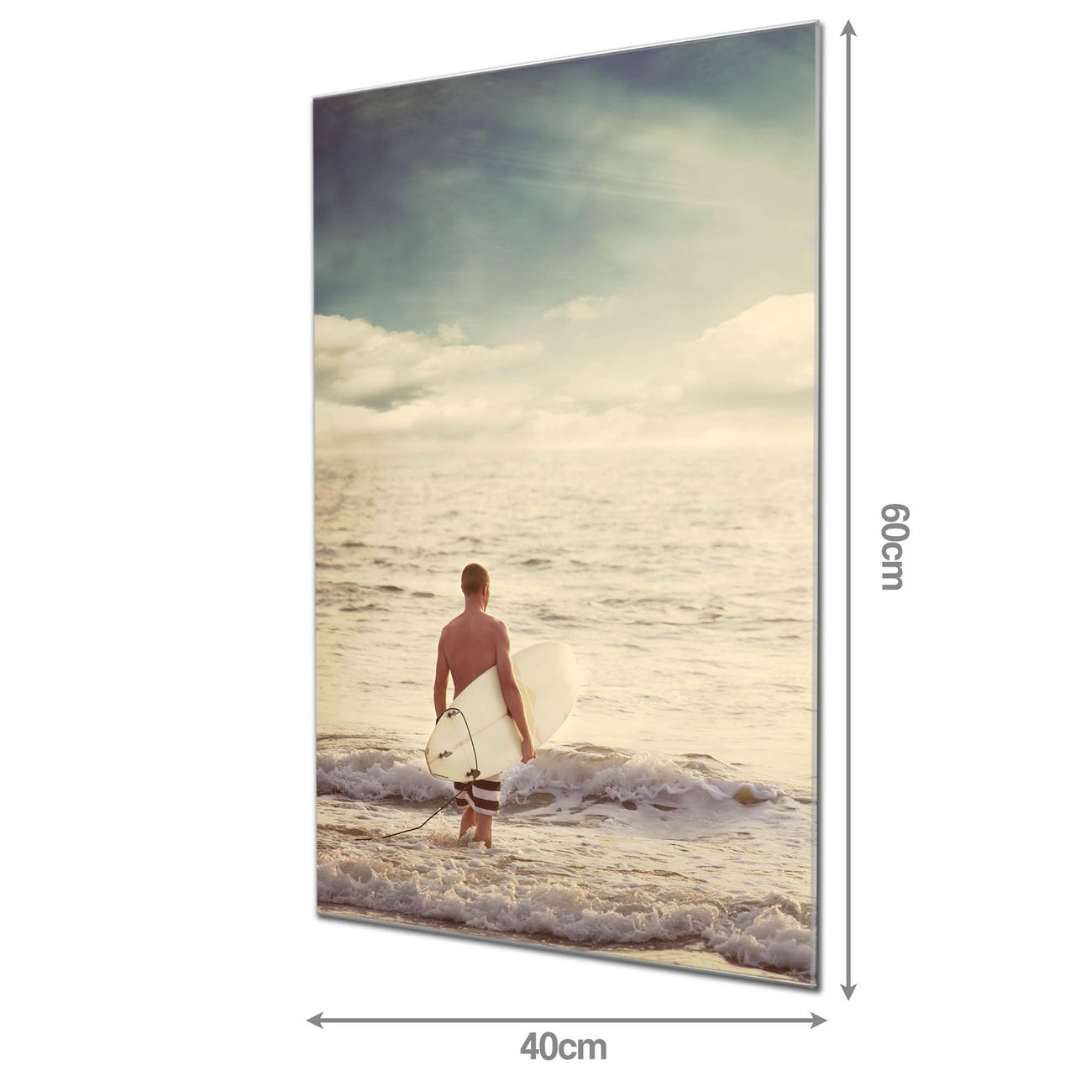 Material: 4mm Sicherheitsglas mit Metallrückwand Eigenschaften: beschreibbar, magnetisch, kratzfest Maße: 40x60x0,6cm, 3,60 kg schwer Motiv Nummer 10632 Wellenreiten Gehen 2 Zubehör: inklusive 4 Neodym-Magnete