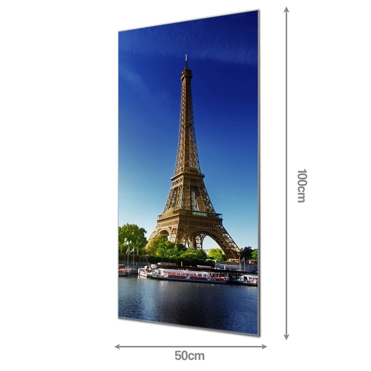 Material: 4mm Sicherheitsglas mit Metallrückwand Eigenschaften: beschreibbar, magnetisch, kratzfest Maße: 50x100x0,6cm, 7,50 kg schwer Motiv Nummer 12404 Tour Eiffel Zubehör: inklusive 4 Neodym-Magnete