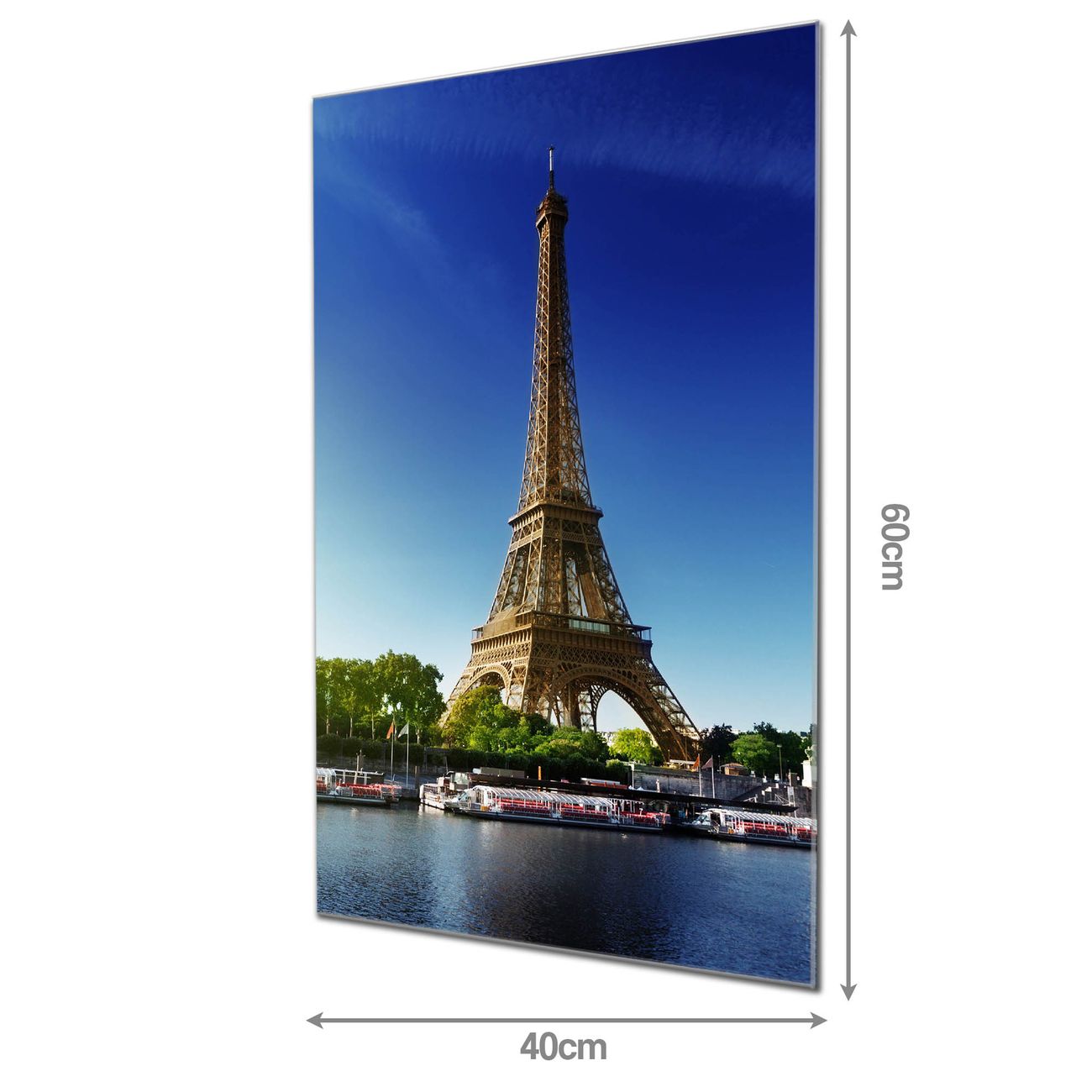 Material: 4mm Sicherheitsglas mit Metallrückwand Eigenschaften: beschreibbar, magnetisch, kratzfest Maße: 40x60x0,6cm, 3,60 kg schwer Motiv Nummer 12404 Tour Eiffel Zubehör: inklusive 4 Neodym-Magnete