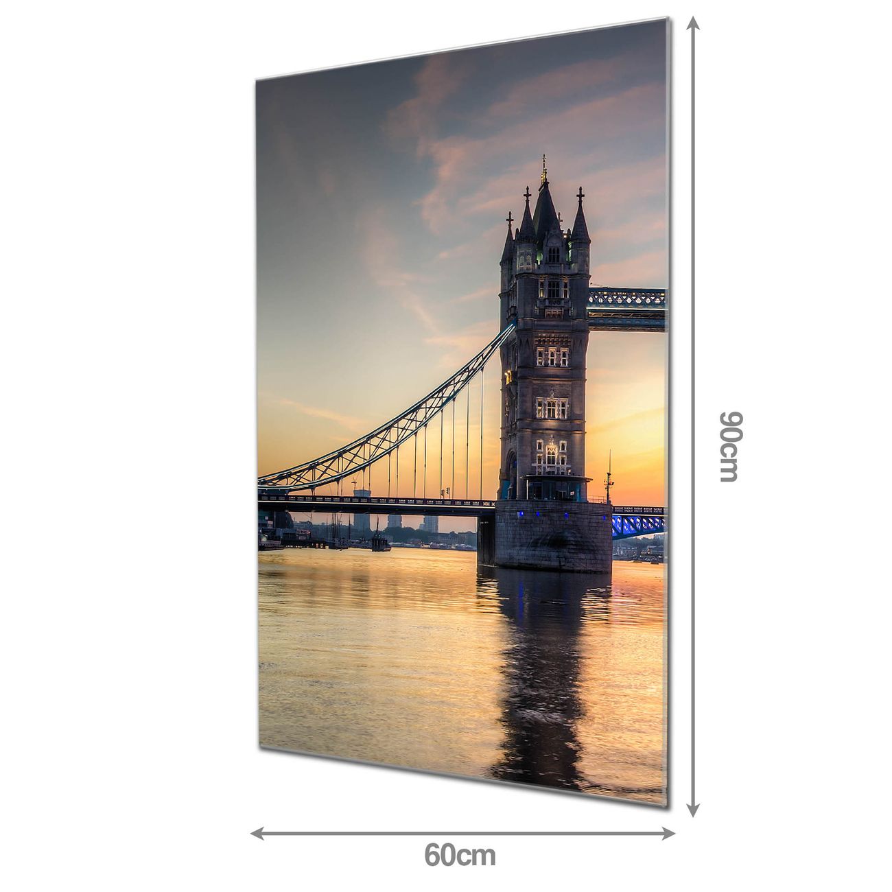 Material  4mm Sicherheitsglas mit Metallrückwand Eigenschaften  beschreibbar, magnetisch, kratzfest Maße  60x90x0,6cm, 8,10 kg schwer Motiv  Nummer 12412 Tower Bridge Zubehör  inklusive 4 Neodym-Magnete