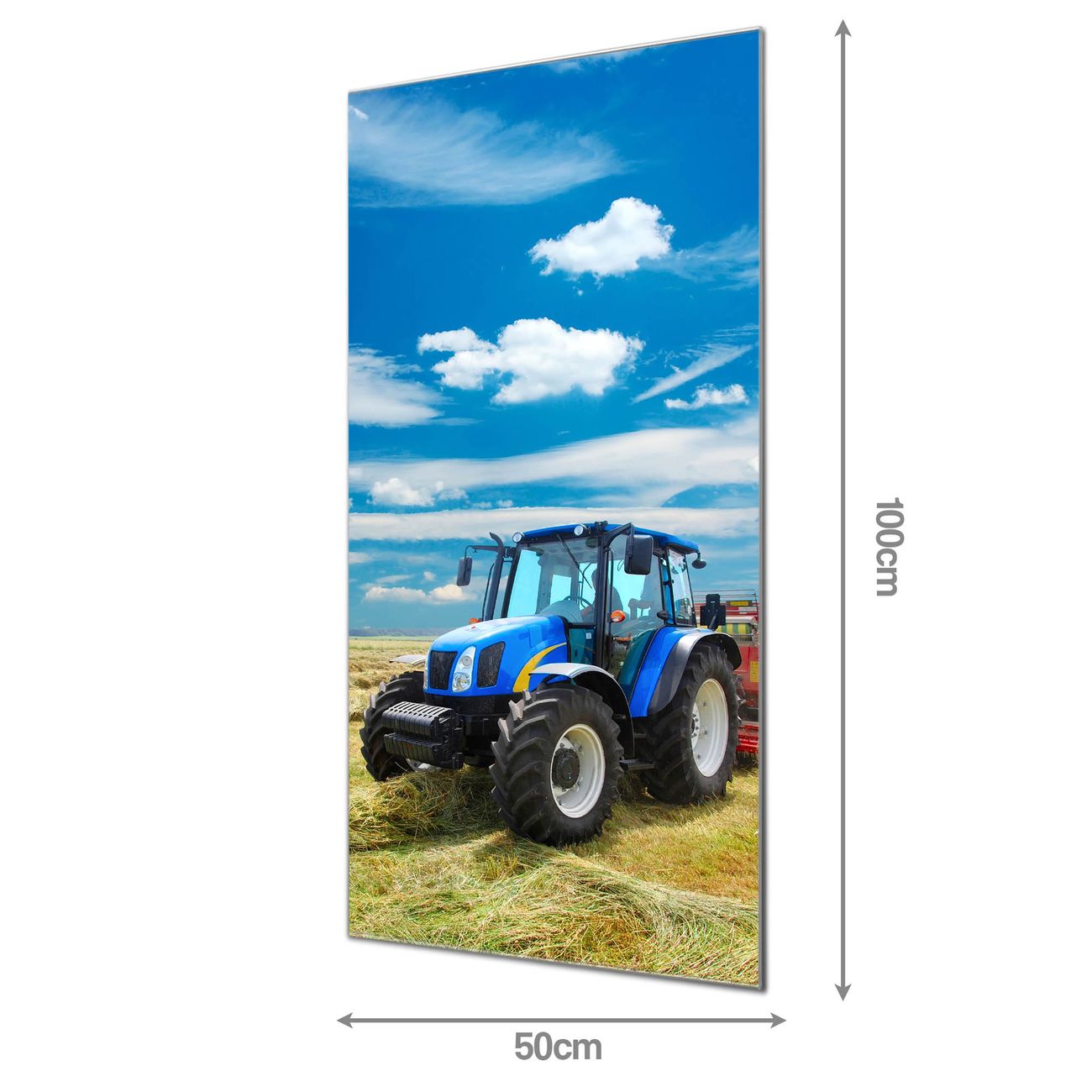 Material: 4mm Sicherheitsglas mit Metallrückwand Eigenschaften: beschreibbar, magnetisch, kratzfest Maße: 50x100x0,6cm, 7,50 kg schwer Motiv Nummer 10128 Traktor Zubehör: inklusive 4 Neodym-Magnete