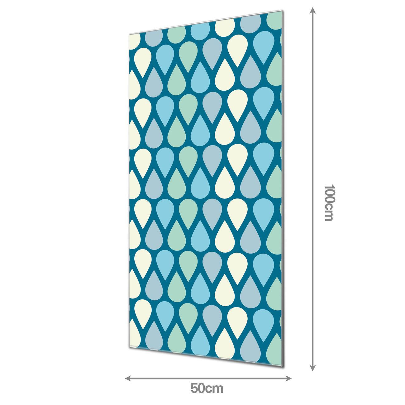 Material: 4mm Sicherheitsglas mit Metallrückwand Eigenschaften: beschreibbar, magnetisch, kratzfest Maße: 50x100x0,6cm, 7,50 kg schwer Motiv Nummer 12185 Tropfen Zubehör: inklusive 4 Neodym-Magnete