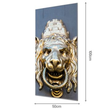 Glas Magnettafel im Hochformat Türklopfer Löwe