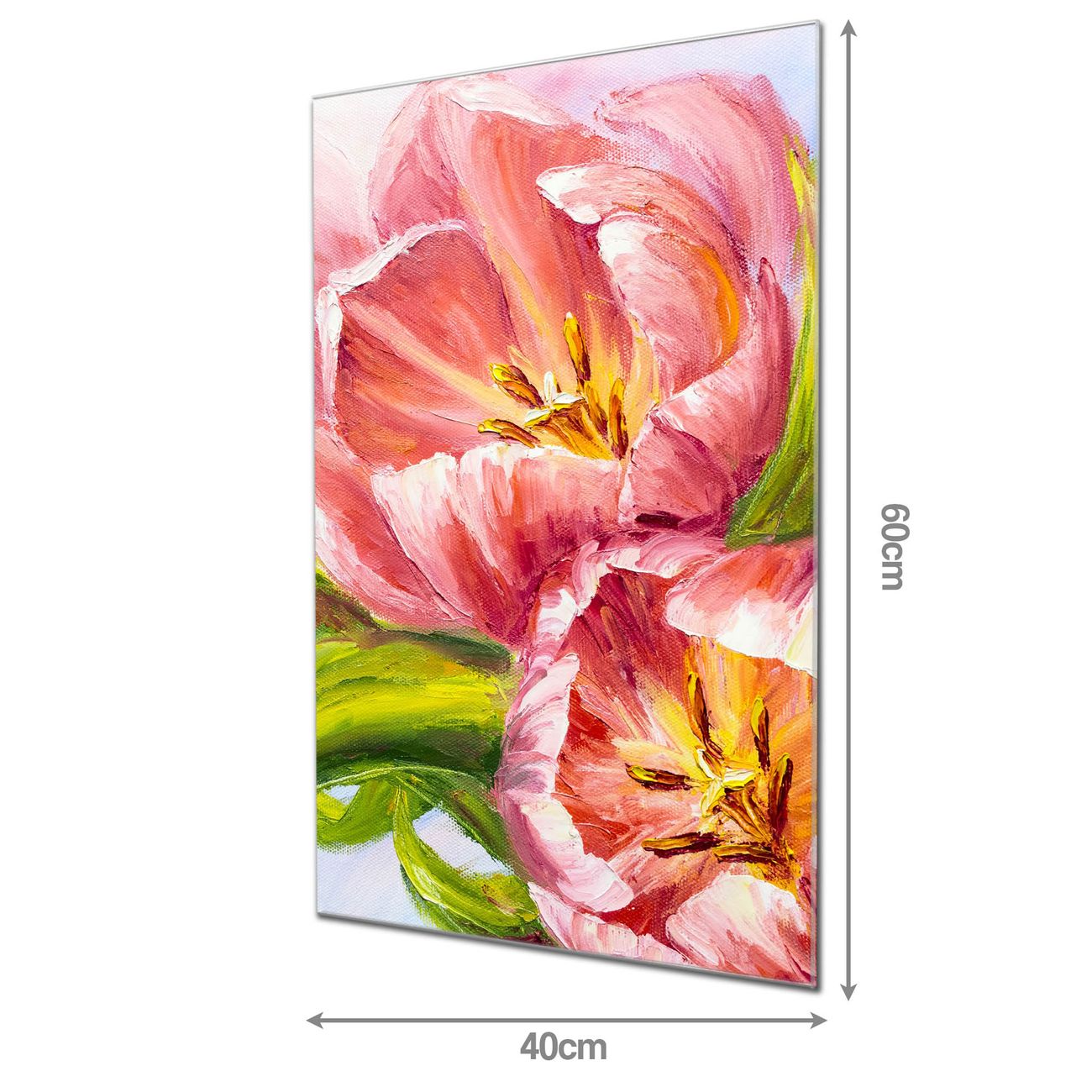 Material: 4mm Sicherheitsglas mit Metallrückwand Eigenschaften: beschreibbar, magnetisch, kratzfest Maße: 40x60x0,6cm, 3,60 kg schwer Motiv Nummer 12342 Tulpen Detail Zubehör: inklusive 4 Neodym-Magnete