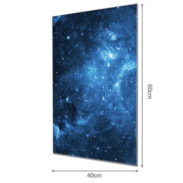 Material: 4mm Sicherheitsglas mit Metallrückwand Eigenschaften: beschreibbar, magnetisch, kratzfest Maße: 40x60x0,6cm, 3,60 kg schwer Motiv Nummer 10437 Universum Zubehör: inklusive 4 Neodym-Magnete