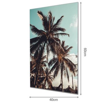 Material: 4mm Sicherheitsglas mit Metallrückwand Eigenschaften: beschreibbar, magnetisch, kratzfest Maße: 40x60x0,6cm, 3,60 kg schwer Motiv Nummer 11509 Unter Palmen Zubehör: inklusive 4 Neodym-Magnete