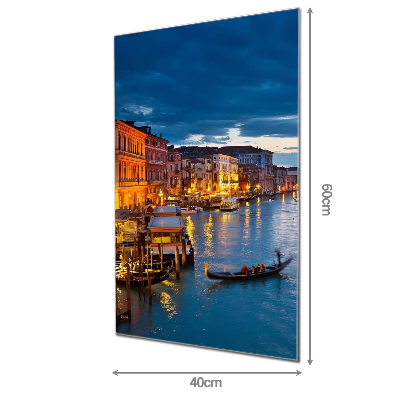 Material: 4mm Sicherheitsglas mit Metallrückwand Eigenschaften: beschreibbar, magnetisch, kratzfest Maße: 40x60x0,6cm, 3,60 kg schwer Motiv Nummer 10088 Canale Grande Bei Nacht Zubehör: inklusive 4 Neodym-Magnete